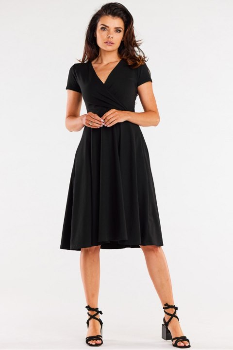 Sukienka midi z krótkim rękawem oraz kopertowym dekoltem. Sukienka pięknie modeluje sylwetkę i podkreśla atuty zarazem maskując mankamenty. Zaprojektowano i uszyto w Polsce.