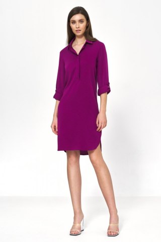 Sukienka Purpurowa sukienka oversize z podwijanym rękawem S226 Purpura - Nife